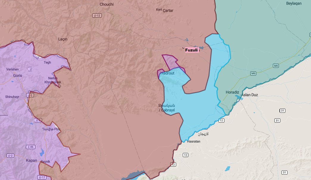 Также во второй половине дня 15 октября появилось первое видео из Гадрута. Таким образом к 16 октября Азербайджан таки смог войти в Гадрут (возможно город еще не полностью зачищен, но после потери высот, с юга и севера, особого смысла за него цепляться уже нет), о взятии которого было объявлено 9 октября. Чтобы натянуть реальную ситуацию на военную пропаганду потребовалась неделя. Армяне неделю поупирались, но как-то относительно легко уступили прилегающие высоты, хотя потеря Гадрута уже в ближайшие дни приведет к полной потере Физули и прилегающих сел. Уже вчера азербайджанцы заняли пачку разрушенных сел и вели бои уже непосредственно в районе Физули, где по ним работала армянская артиллерия. О взятии Физули пока не заявлялось, но полагаю, это вопрос ближайших дней. Далее Азербайджан может пытаться развивать наступление через горные районы вглубь НКР или же напрячь оборону армян у Мартуни.