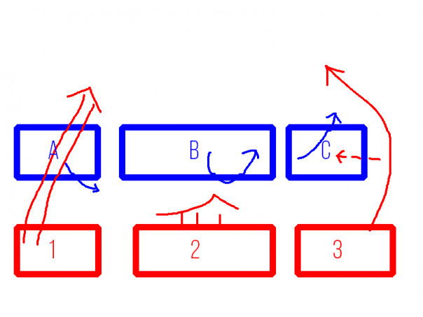 Центр (В) и атакованный фланг (С) интуитивно начинали разворачиваться в сторону прорыва.