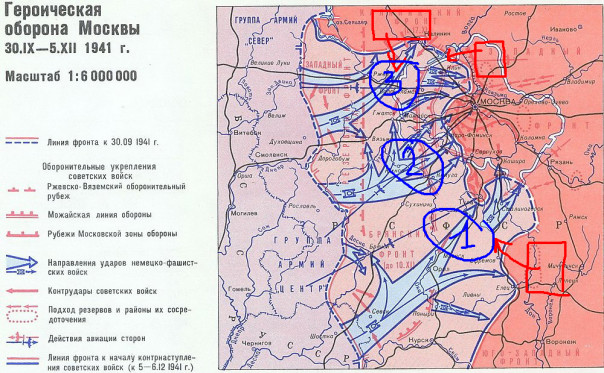 Считается что контртактику придумал Дмитрий Донской и с успехом применил на Куликовом поле. Ее суть в том что на направлениях ударов копятся резервы. И чем глубже крылья заходят в тыл тем выше риск получить удар в спину и окружение от "Засадного полка". И если на  Куликовом поле был один засадный полк, то в ВОВ начинали копить резервы уже на направлении двух ударов На карте Битвы за Москву резервы показаны квадратом.