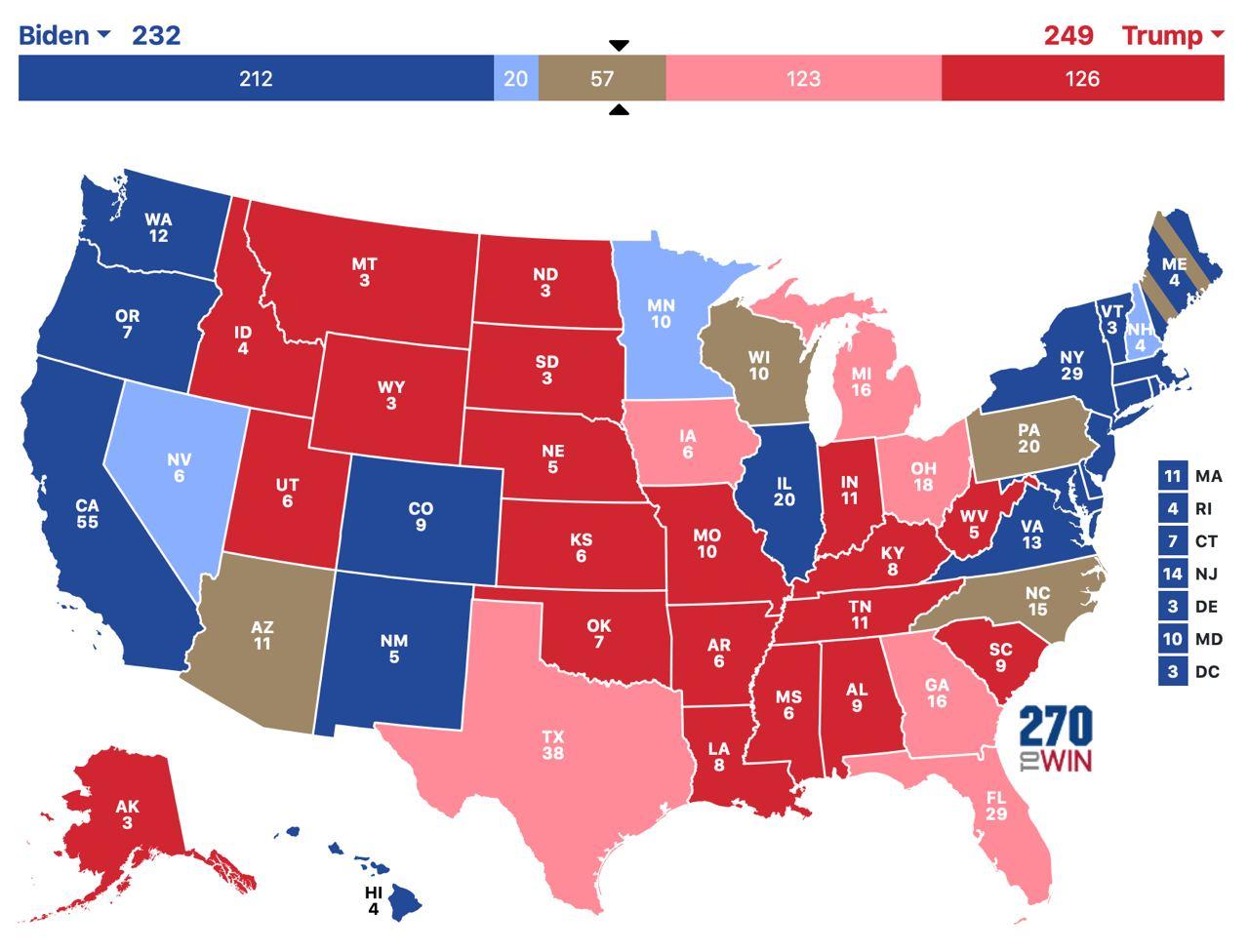 Победа Трампа во Флориде, Огайо и Мичигане почти гарантирует его переизбрание. Ему тогда останется взять лишь парочку штатов - Северную Каролину и Висконсин, что вполне реально.