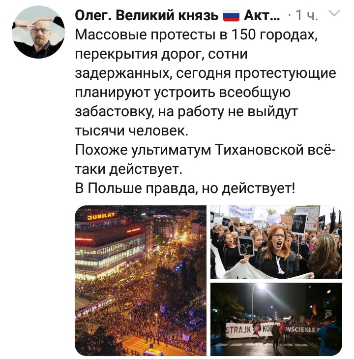 Акции охватили все крупные города Польши. Полиция действовала жестко, в ход шли дубинки и слезоточивый газ – официальная Варшава делала ровно то, в чем упрекала Минск. У протеста появился свой символ – красная молния – и лидеры, которые уже прямо говорят о конечной цели митингов.