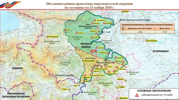 Обновленная карта развертывания миротворцев после передачи 20 ноября Агдамского района Азербайджану.