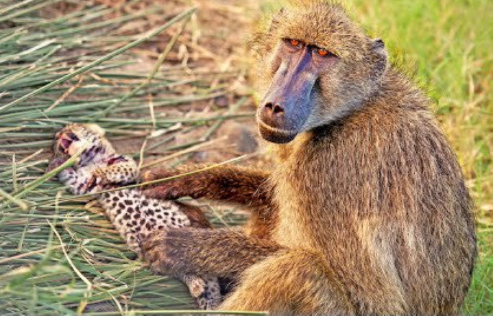 В 2020 году сразу в двух африканских нацпарках зафиксировали удивительное зрелище — павианов, которые украли крохотных детенышей леопарда. Первый случай произошел в нацпарке Пиланесберг, ЮАР. Его снял Пол Вуд, один из туристов, находящихся на сафари по саванне в тот день.