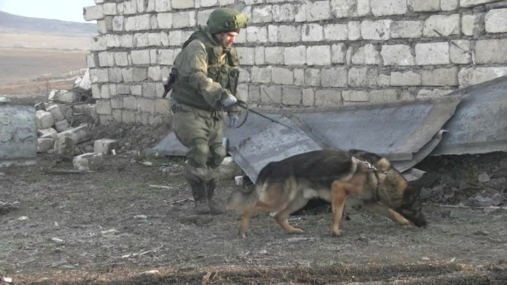 Саперы Международного противоминного центра ВС РФ, работающие в составе российских миротворческих сил в Нагорном Карабахе, завершают разминирование северной окраины Степанакерта.