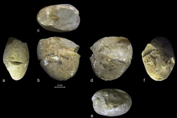 Это орудие, найденное в пещере Табун на севере Израиля, представляет собой небольшой округлый булыжник возрастом около 300 000 лет, что в представлении ученых предшествует появлению Нomo sapiens как минимум на 50 000 лет.