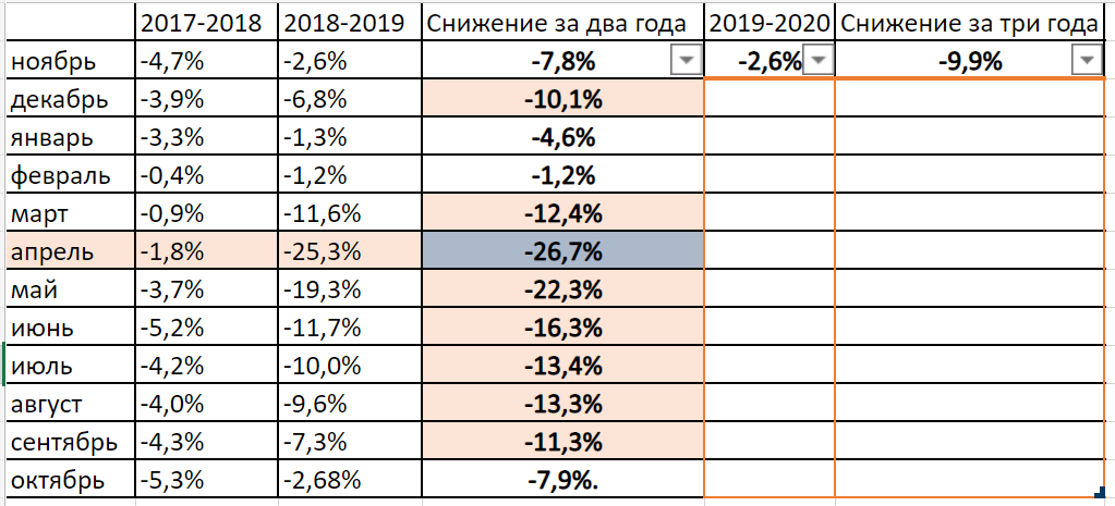 Выкладываю таблицу по всем месяцам, чтобы читатель осознал: что такое кризис: