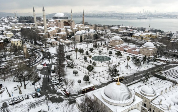 Video | Drone footage shows snowfall in Istanbul’s Sultanahmet district pic.twitter.com/SXGtoopHTV