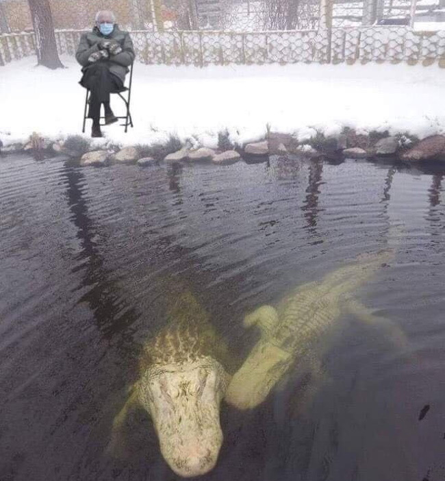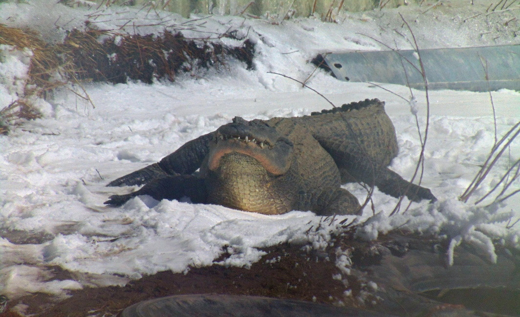 Аллигаторы-моржи гуляют по снегу: редкое зрелище