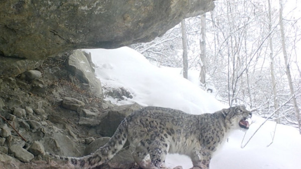 Самец снежного барса начинает свой призыв примерно на 20-й секунде видео и не прекращает серенаду еще добрых 20 секунд. Позже он скрывается из кадра, взмахнув на прощание своим длинным пышным хвостом.