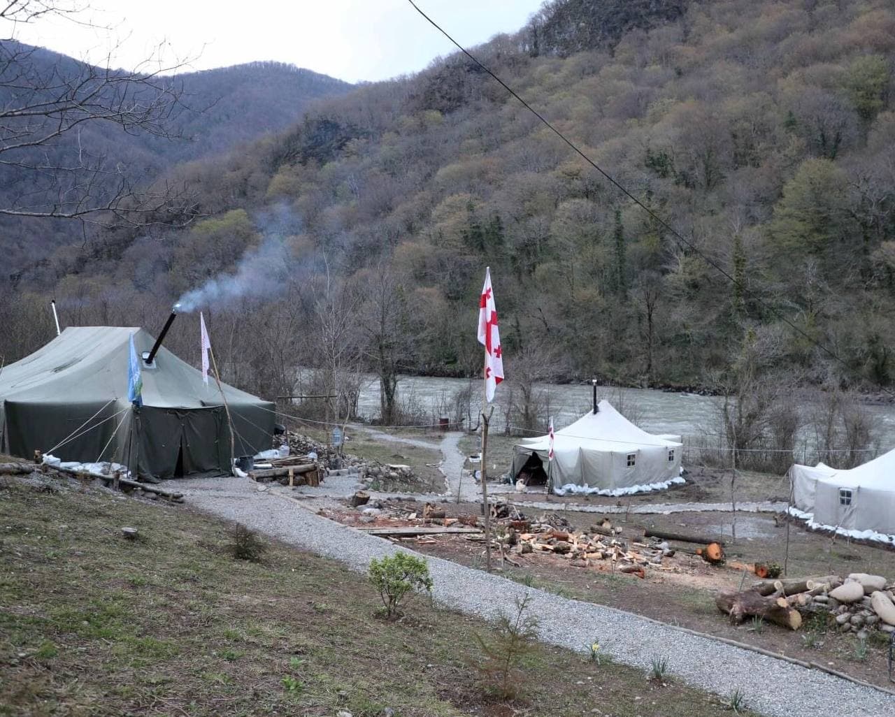 Участники потребовали от правительства Грузии расторгнуть договор с турецкой компанией ENKA, которая ведет строительство, саму компанию призвали покинуть ущелье Риони.