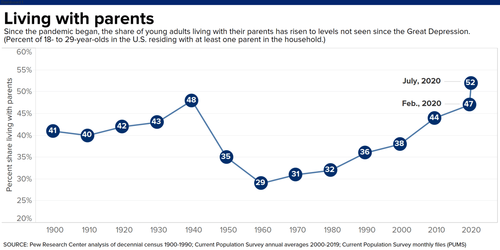 США: Доля молодежи, живущей в "подвале у родителей", обновила рекорд и вышла на уровень Великой Депрессии