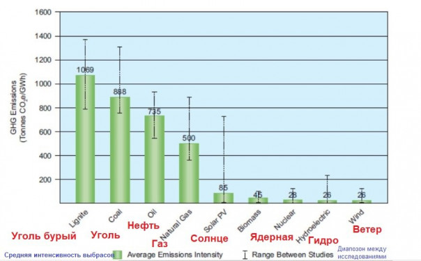 Жизненный цикл и интенсивность выбросов парниковых газов в технологиях производства электроэнергии.