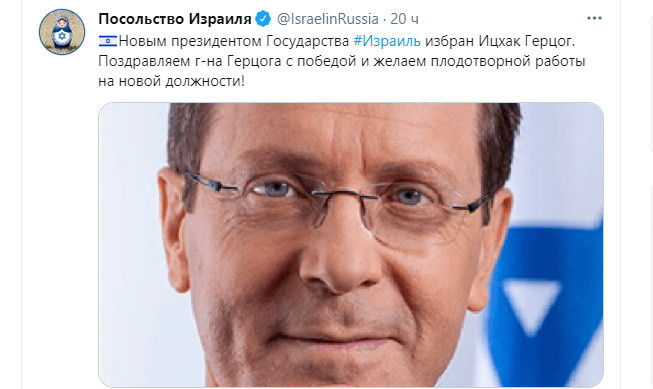 В Израиле в ходе первого тура выборов президента победил независимый кандидат Ицхак Герцог. По данным издания The Times of Israel, он набрал 87 голосов парламентариев.