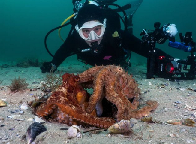 Австралийский дайвер Жюль Кейси (Jules Casey) снимает под водой видео, и недавно она стала свидетелем брачного ритуала осьминогов.