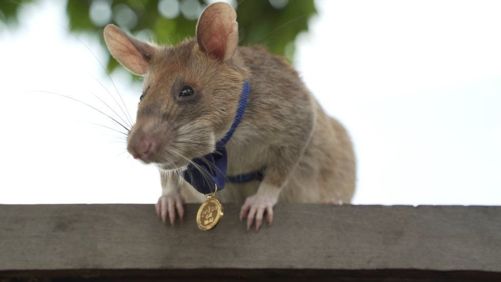 Самец гамбийской хомяковой крысы (Cricetomys gambianus) по кличке Магава на протяжении года «посещал школу» при организации Apopo, которая базируется в Танзании и с 1990-х годов обучает животных искать мину. Получив сертификат, он приступил к работе в Камбодже и за свою пятилетнюю карьеру обнаружил 71 мину и еще десятки неразорвавшихся снарядов.