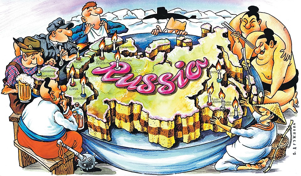 «Тут возникает очень серьёзный вопрос, а вы представляете, сколько ещё всего ещё не признает Великобритания, США, Германия? Япония, кстати, много чего не признаёт, Китай много чего не признаёт, у Финляндии особые взгляды на Карелию, у Германии с Польшей особый взгляд на Калининград.