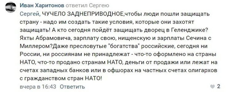 В главной на сегодня информационной сети Интернет, которая целиком и полностью контролируется враждебными России внешними силами, господствуют настроения, полностью соответствующие целям противника. Вот типичный продукт такого рода агитации, который вы смело можете умножить на миллионы.