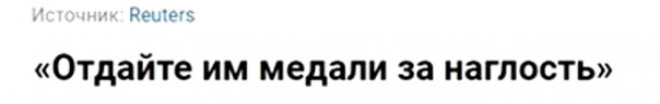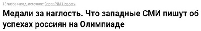 Но самое поразительное, что данный материал озаглавлен «Медали за наглость. Что западные СМИ пишут об успехах россиян на Олимпиаде». То есть с явной претензией на то, что именно такова точка зрения западных комментаторов.