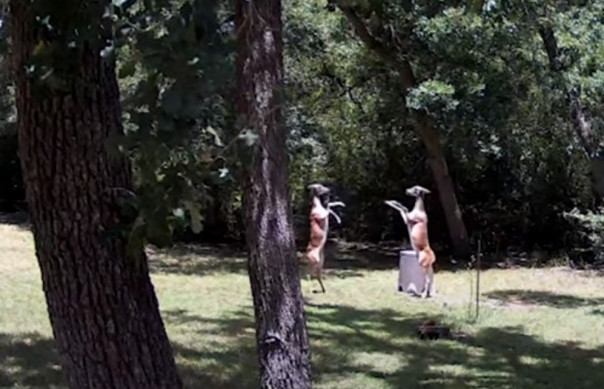 Семья Макмиллан часто приезжает отдыхать на ранчо в Техасе. К дому нередко выходят олени, а люди, в свою очередь, оставляют им корм. Недавно на камеры видеонаблюдения попала уникальная сцена битвы двух олених.