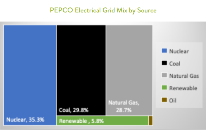 3. Энергия (оценка С+). Округ имеет одну из самых передовых структур возобновляемой энергии, при этом импортирует порядка 90 % потребляемой энергии. Энергия в основном поступает от двух региональных предприятий: Pepco и Washington Gas. Структура генерации