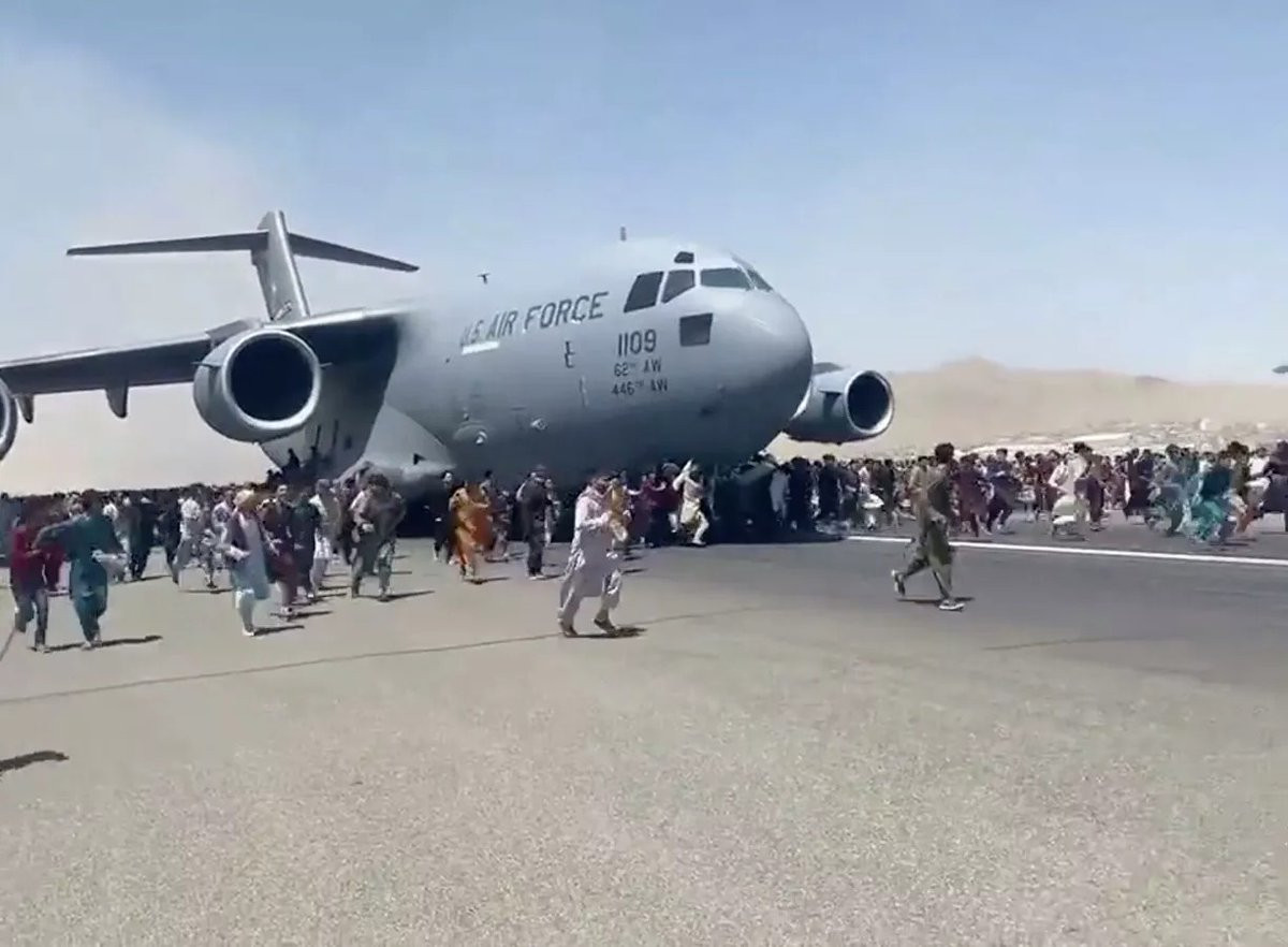 Ранее афганские СМИ распространили кадры, на которых видно, как с американского транспортного самолета, вылетающего из Кабула, падают люди - предположительно, жители страны, которые пытались бежать, зацепившись за шасси.