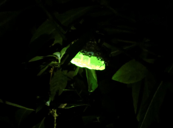 Чтобы выяснить это, команда по ночам бродила в темноте, освещая все вокруг ультрафиолетовыми лампами. Задачу осложняли опасные условия: нужно было подобрать подходящую защиту от змей, пауков, насекомых и других животных, активных в темное время суток. Однако идея себя оправдала: исследователи обнаружили гнезда азиатской осы Polistes chinensis, которые светились ярко-зеленым светом.