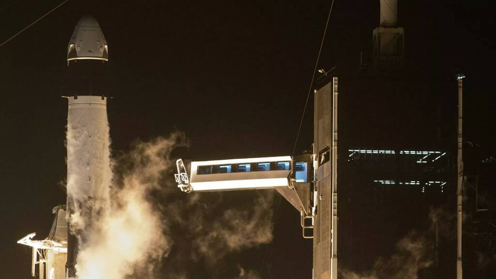 Ракета-носитель Falcon 9 стартовала с космодрома на мысе Канаверал (штат Флорида), она выводит на орбиту корабль Crew Dragon с первым в истории непрофессиональным экипажем на борту, компания SpaceX ведёт прямую трансляцию запуска.