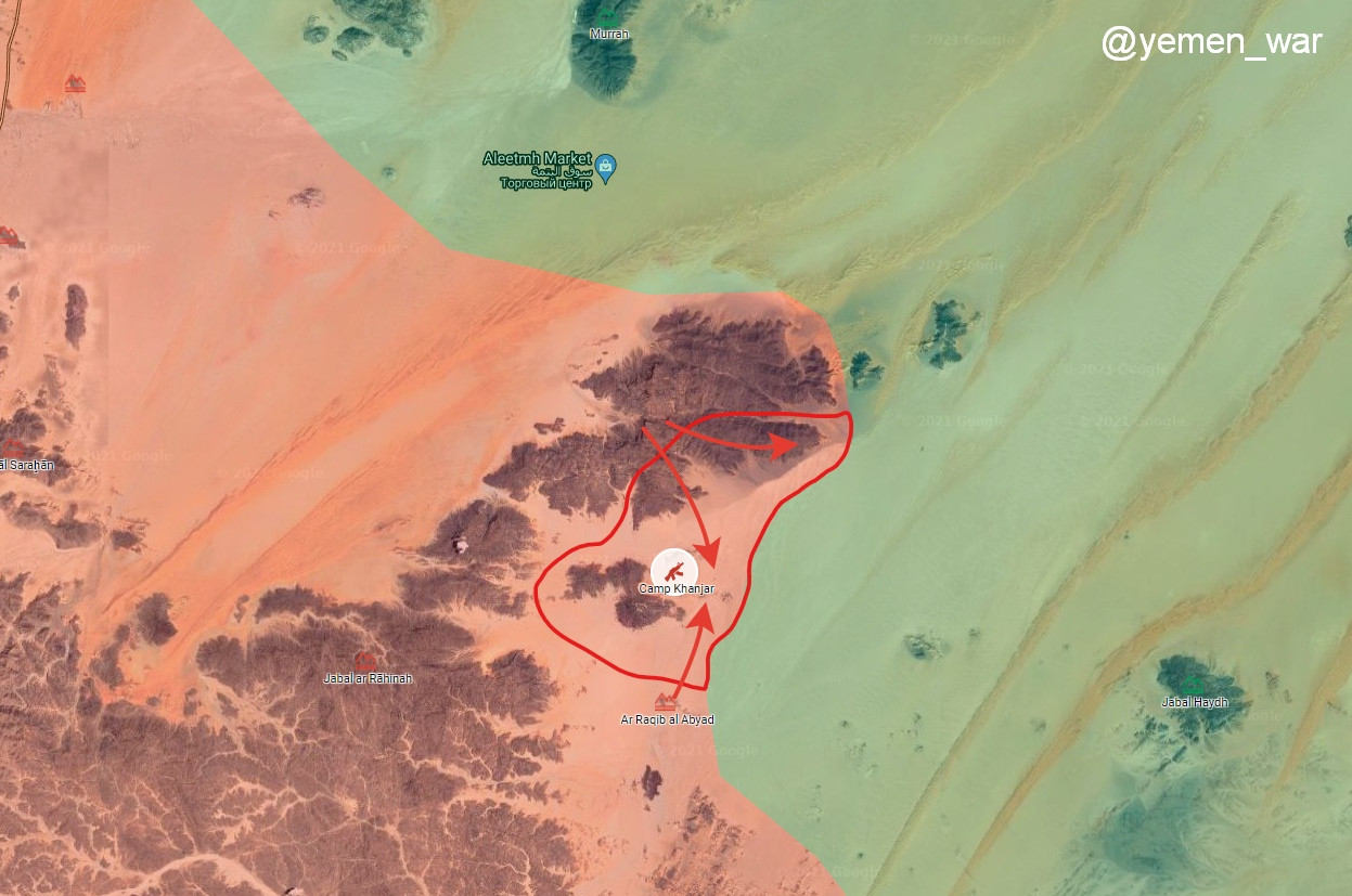 Помимо этого, перешли в наступление силы хуситов севернее Мариба в Джауфе. Сообщается что им удалось взять военный лагерь Ханжар. На данный момент ВВС Саудовской Аравии наносит активные авиаудары по тому участку фронта дабы оборона хадистов от нажима на Мариб с двух сторон не рухнула окончательно.