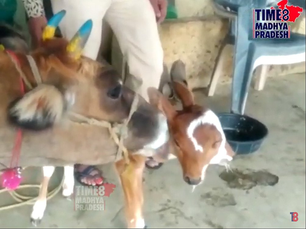 Двуликий четырехглазый теленок родился в регионе Индор индийского штата Мадхья-Прадеш. В стране, где коровы считаются священными животными, такое отклонение было воспринято как божественный знак. Слава о необычном животном распространилась далеко за пределы деревни, и поклониться «божественному теленку» теперь приходят люди со всей Индии.