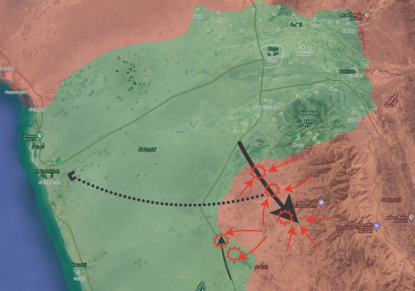 Так, в районе операции «Золотая дуга», у города Хайс южнее Ходейды, наступление группировки хадистов, после понесенных потерь фактически, остановилось. Крайняя попытка продвинуться южнее населенного пункта закончилась полной катастрофой для сил Хади. Так, ударный батальон, вклинившись в оборону хуситов, попал впоследствии в окружение. Понеся большие потери в людях и технике, окруженцы были вынуждены прорываться из котла и отходить в тыл для перегруппировки.