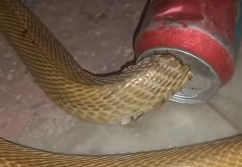 Представители природоохранных организаций индийского штата Одиша помогли кобре, которая застряла в пивной банке, которую ранее выбросил прямо на землю какой-то невоспитанный и безответственный сукин сын.