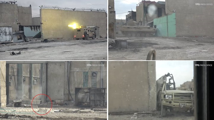 Утром 25 января в сети появилось фото, на котором курды перебрасывают к тюрьме «Ас-Сынаа» танк. Тем не менее, превосходство в воздухе не позволило курдским бойцам сломить сопротивление террористов. Бои в районе тюрьмы продолжались сегодня до позднего вечера.