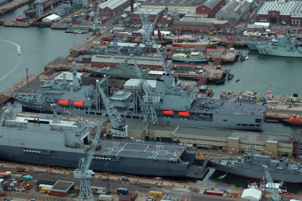 Военно-морская база в Портсмуте нынче буквально переполнена современными стел-эсминцами.