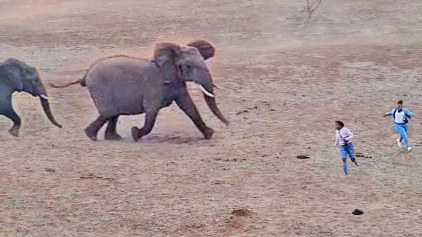 Туристы, находившиеся с одной стороны дороги, не слишком рисковали, но по другую сторону тоже было несколько человек, и стадо двигалось прямо на них. Встреча даже с одним слоном среднего размера может закончиться трагически, однако возглавляющая стадо самка особенно опасна. Она двигалась в сторону двух девушек, которые, к счастью, успели убежать. «Матриарх» решила за ними не гнаться и продолжила миссию проводника для своих подопечных.