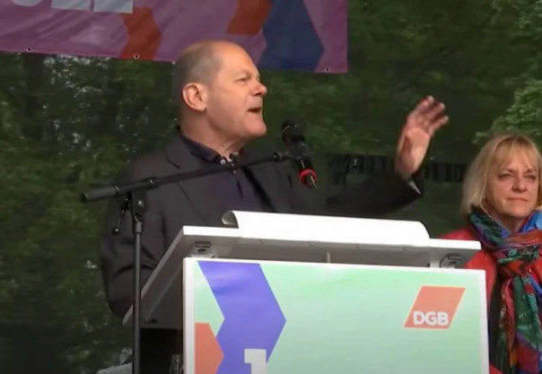 Федеральный канцлер Германии накануне выступил на митинге, где объявил о необходимости продолжать военную поддержку Украины. При этом речь Олафа Шольца была такой, что она вызвала определённые ассоциации. Если бы видео было не цветным, а чёрно-белым, то ассоциации эти бы явно усилились… В своё время с трибуны подобным образом кричал другой немецкий канцлер - Адольф Гитлер.