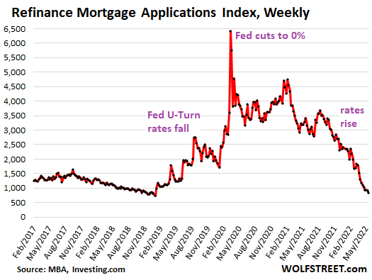 Заявки на ипотеку для рефинансирования взятой ипотеки упали ещё больше, до самого низкого уровня с конца 2018 года.