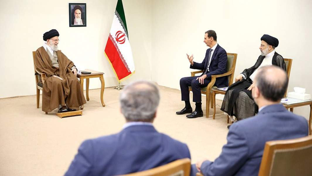 Высший руководитель Ирана аятолла Хаменеи, президент Сирии Башар Асад и президент Ирана Ибрахим Раиси во время встречи в Тегеране