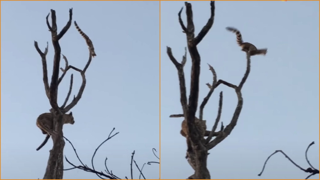 Генета совершила «прыжок веры», спасаясь от леопарда