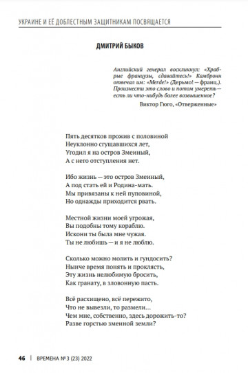 Знаете, может быть, это вовсе не тот Дмитрий Быков, который всякому из нас вспоминается? Мало ли Димок Быковых на территории бывшего СССР? Да как в Бразилии диких обезьян! Журнал «Времена» меленьким шрифтом пишет о всех своих малоизвестных поэтах, кто они и откуда поясняет, а вот про этого ничего не написал, даже в Содержание не вынес. Наверное, считает, что мы и так знаем.