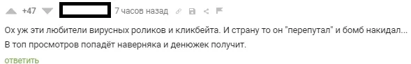 «Ох уж эти любители вирусных роликов и кликбейта. И страну-то он "перепутал", и бомб накидал... В топ просмотров попадет наверняка и денежек получит»,