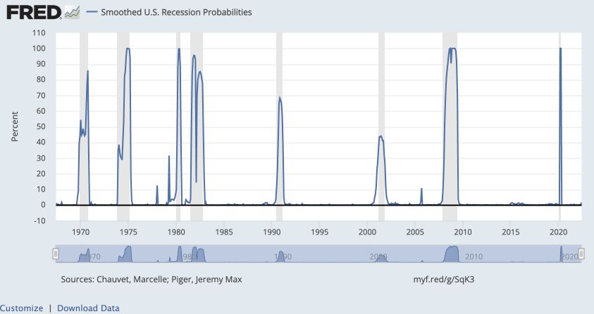 К счастью, существует еще один вариант выхода из ситуации, предлагаемый ФРС. Таким вариантом – является использование модели оценки текущей вероятности рецессии, которая выглядит как-то так: