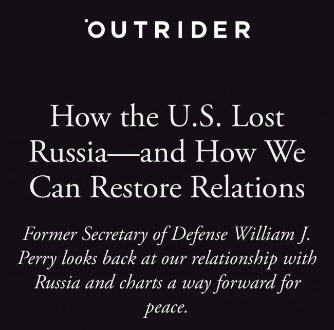 Бывший министр обороны США Уильям Перри (с февраля 1994 года по январь 1997 года) выступил с заявлением о том, что Вашингтон должен признать свою вину за то, что сломал отношения с Россией и поставил мир перед угрозой ядерного конфликта.