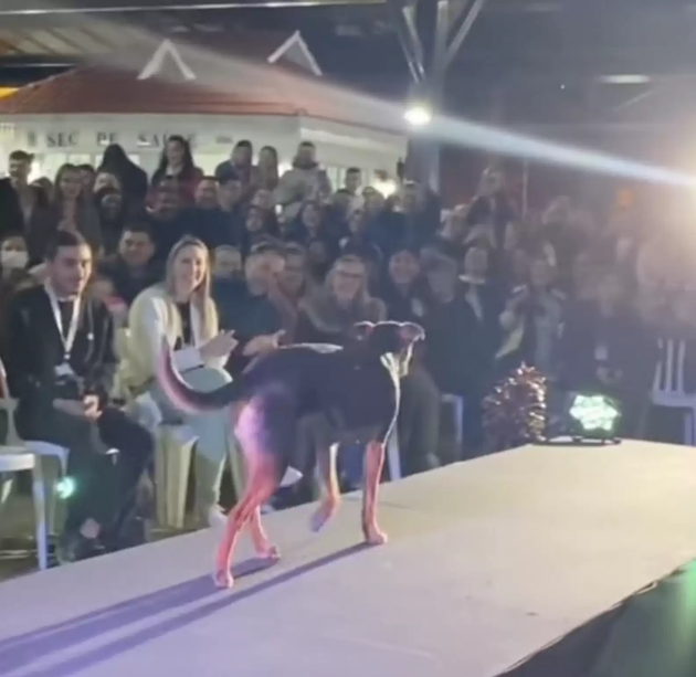Собака пробралась на конкурс красоты и продефилировала по подиуму