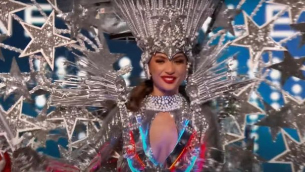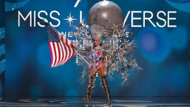 Американка Р'Бонни Габриэль на конкурсе национальных костюмов вышла к зрителям в образе Вселенной. Костюм состоял из откровенного боди, серебристых ботфортов на каблуках, массивной конструкции в виде сферы, звезд и высокой короны. В руке участница в дополнение несла флаг США.
