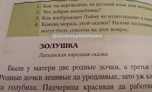 Вечером прислали прекрасное - фото страниц учебника для бывших русских школ Латвии. С удивлением узнал, что две самые известные детские сказки были написаны не конкретными авторами. Ну, например, Шарлем Перро и Александром Пушкиным (были и другие), а древними латышами.