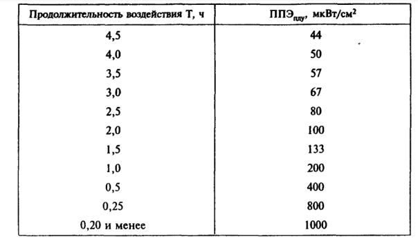 Для определения безопасного времени при разных значениях плотности потока энергии существуют нормы, которые также закреплены в СанПин. Например, при нахождении вблизи источника излучения не более часа допустимым является показатель в 200 мкВт/см2 (0,2 мВт/см2). При этом стоит помнить, что микроволны довольно коварны, так как почувствовать их человеческий организм способен только при плотности потока энергии порядка 20000 мкВт/см2.