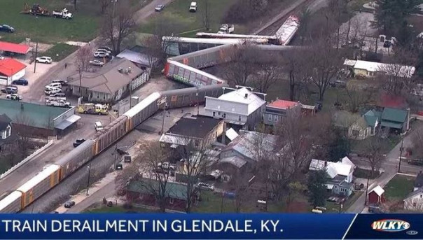 17 марта в Кентукки новая ж/д авария с опрокинувшимся подвижным составом с рельсов (фото ниже). В этот же день в Луизиане сошел с рельсов очередной грузовой поезд.