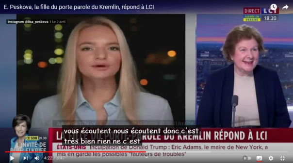 Е. Пескова (слева) и журналистка France Culture Кристин Окрен. Скриншот передачи с канала LCI в YouTube.