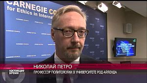 Нарекания вызвали также заявления профессора политологии Университета Род-Айленда Николая Петро, в выступлении которого говорилось, что "при любом сценарии Украина окажется самым главным проигравшим" из-за оттока населения и разрушения промышленной базы страны.ТАСС