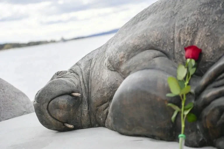 В прошлом августе написала вот этот пост. А сегодня увидела его ожидаемое продолжение. Убитой моржихе убийцы поставили памятник в городе Осло. Чтобы каждый мог принести туда цветочек и умилиться собственной чувствительности.